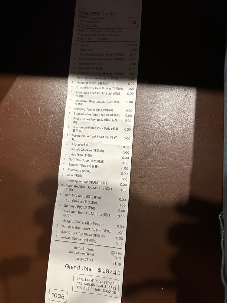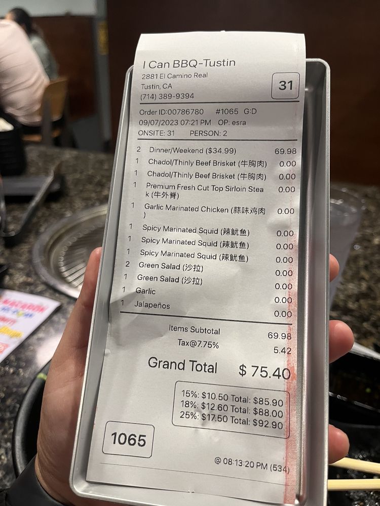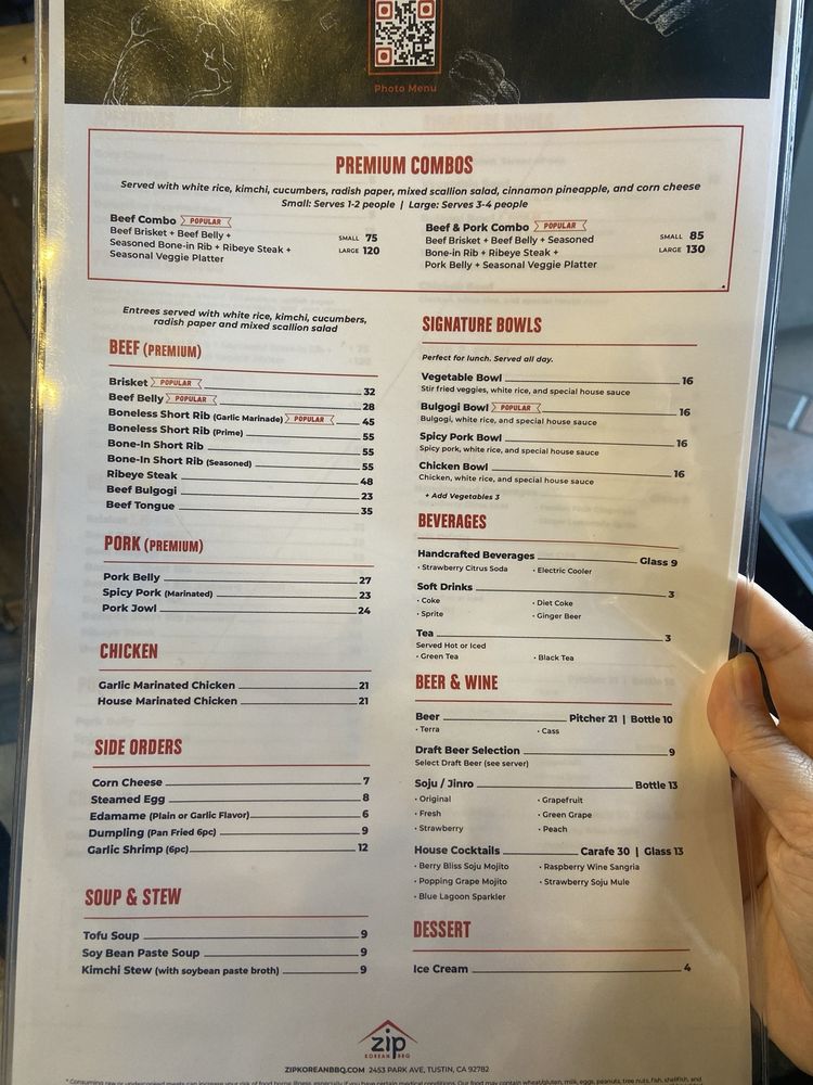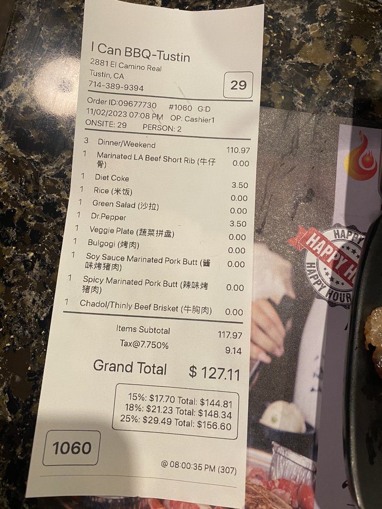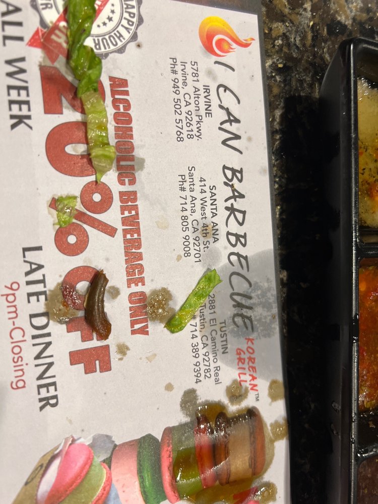 "I Can Barbecue -Tustin" offers a unique dining experience with a DIY concept, where customers cook their meals on a built-in table element. The menu includes a variety of marinated meats like LA Galbi, Bulgogi, Brisket, Teriyaki Chicken, and more served with rice and salad. The side dishes, including Kimchi, Radish, and Cucumber, complement the main dishes perfectly. Customers rave about the quality of the meat and the efficient service, with robot waiters delivering food to tables. The restaurant is spacious, clean, and offers a fun atmosphere with modern amenities like QR code ordering and robot service. Whether you're a KBBQ enthusiast or trying it for the first time, "I Can Barbecue -Tustin" promises a memorable dining experience.